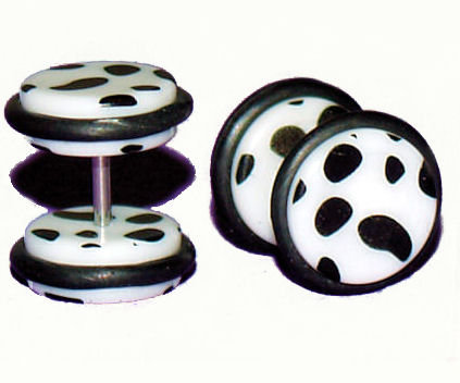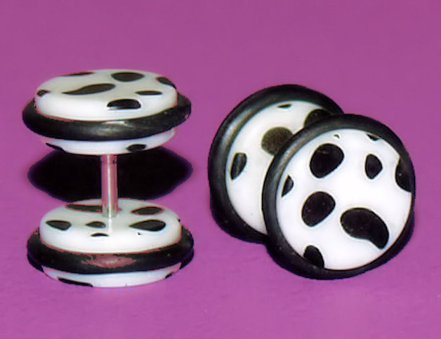 Pair (2 Pcs) Acrylic Black dots Fake Cheater Plugs 00g- High quality Acrylic - Two O Rings- 316L Stainless Steel Shaft - Size: 16 gauge - Length: 1/4" (6mm) - msin2103