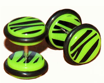 Pair 16G Acrylic Green Zebra Cheater Illusion Fake Plugs 00G Gauges