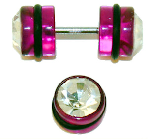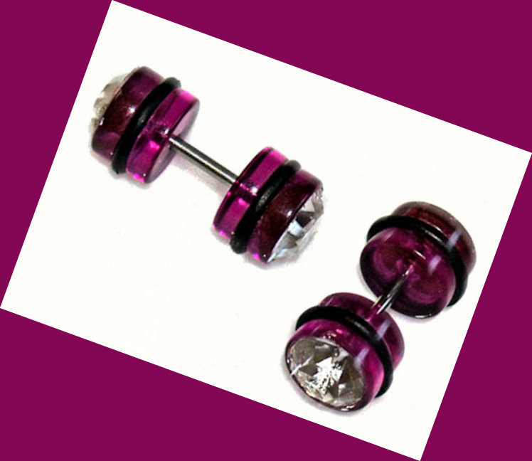 Pair (2 Pieces) Purple Acrylic Ear Cheater With Clear CZ Illusion Plugs 0 Gauges- 16 Gauge shaft. 0 Gauge Acrylic ends with rubber O-Rings - Get the heavy gauge look without stretching - 316L Stainless Steel Shaft - Size: 16gauge - Length: 1/4" (6mm) - msin829