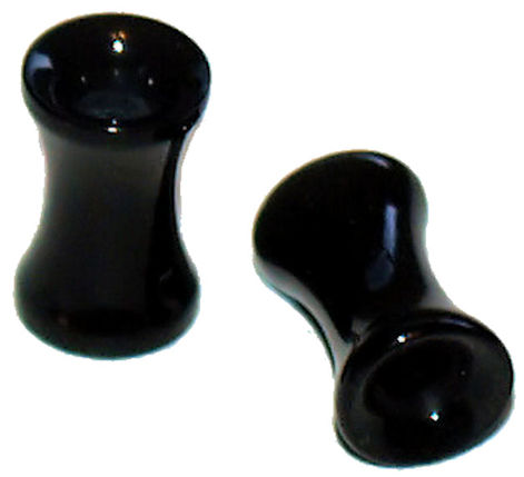 Pair Acrylic Double Flared Black Ear Tunnel Gauges Plugs