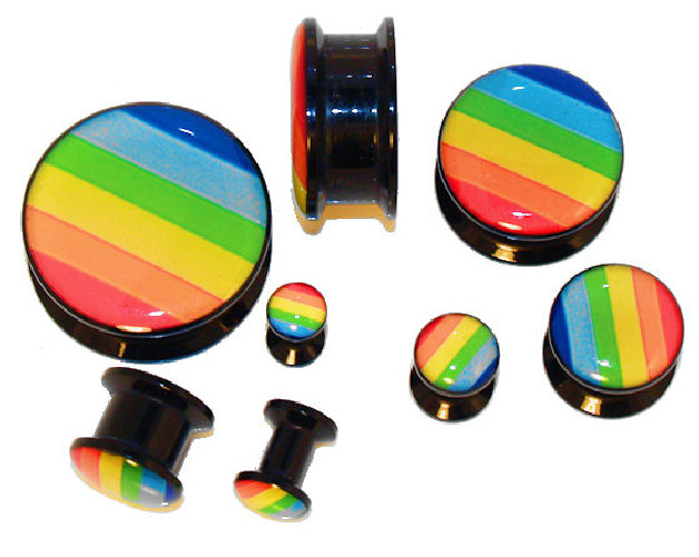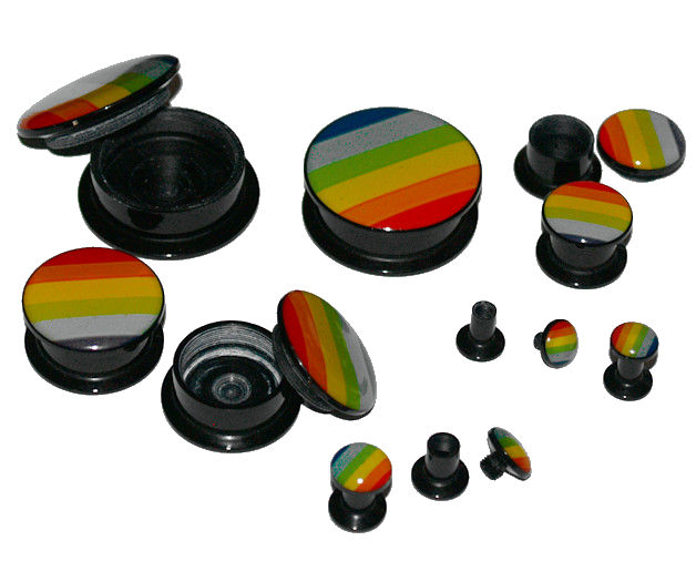 Pair (2 pieces) of Acrylic Gay Pride Rainbow Screw On Gauges Ear plugs Gauge- High quality acrylic- Light weight - Choose yours from: 8g(3.2mm), 6g (4mm), 4G (5mm), 00G (10mm), 7/16 (11.2mm), 1/2 (12.7mm), 9/16 (14mm), 5/8 (16mm), 11/16(18mm), 13/16(20mm), 7/8(22mm) and One Inch (25mm) - msin28